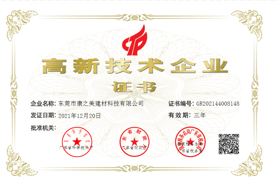 本次被認定為高新技術企業(yè),這是公司發(fā)展史上的又一個里程碑。也必將為公司注入新的創(chuàng)新動力。今后,康之美建材將繼續(xù)引入高素質的人才團隊,加大科研投入,深耕于無機地坪領域,特別是強力開拓無機磨石系列產品及應用技術,為企業(yè)持續(xù)、健康、快速發(fā)展,提供強有力的技術支撐,力爭成為無機地坪行業(yè)跨越發(fā)展的中堅力量。