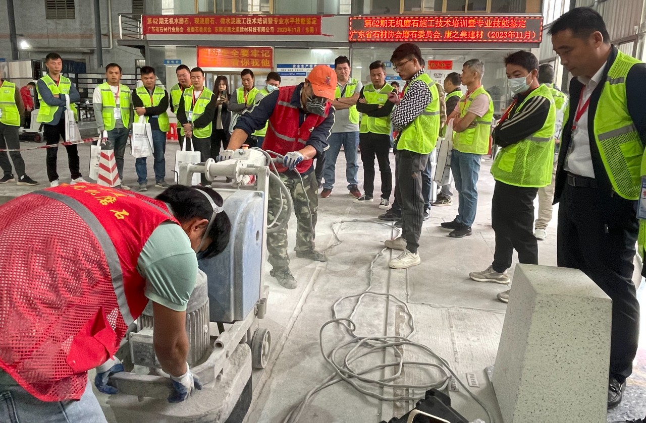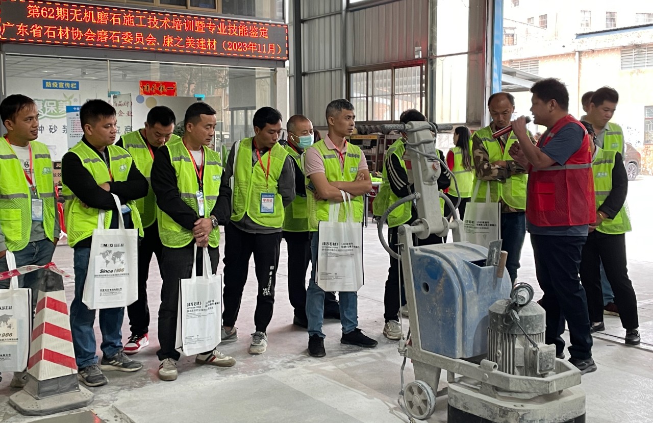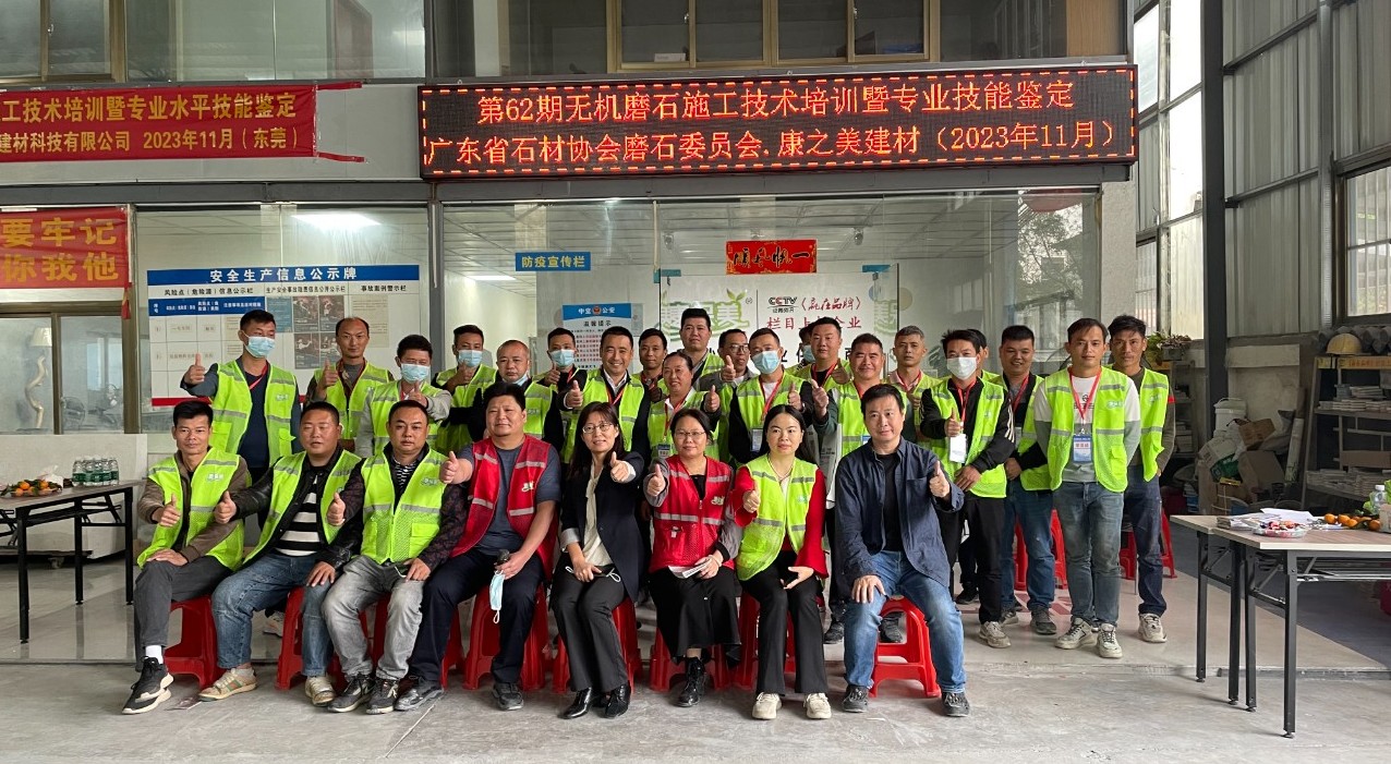 又云:二流匠人技術(shù)高超、匠人德藝雙馨、技能超群!由此看來,錯綜復(fù)雜社會長河,瞬息萬變,而對能工巧匠的要求則萬變不離其宗——職業(yè)道德和高超技藝不可或缺、亙古不變!2023年11月16-17日第62期《無機水磨石、現(xiàn)澆磨石、微水泥施工》技術(shù)培訓(xùn)在東莞舉行,一群銳意進取、求知若渴、獨具匠心工程管理和技術(shù)骨干參加此次培訓(xùn)。本次活動由東莞市康之美建材科技有限公司、廣東省石材行業(yè)協(xié)會省、磨石委員會聯(lián)合主辦,廣東省石材行業(yè)工會聯(lián)合會、省石材應(yīng)用護理委員會協(xié)辦,來自地產(chǎn)開發(fā)、裝飾裝修、設(shè)計應(yīng)用、工程施工、酒店管理、清潔物業(yè)等企業(yè)精英匯聚一堂,參加培訓(xùn)。